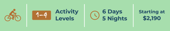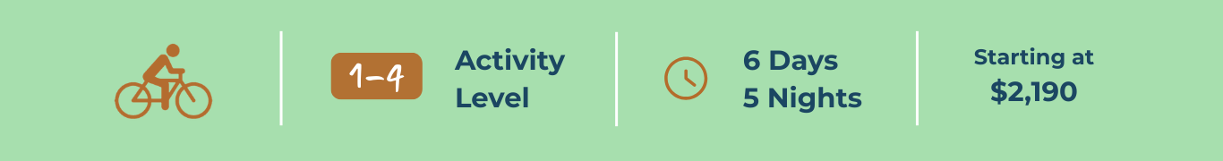 “Optional” means it is easy for you to skip the activity. Skipping or modifying other routes may be possible but not in as easy of a manner. Activities are weather-dependent. Distances and durations may vary from the information given above